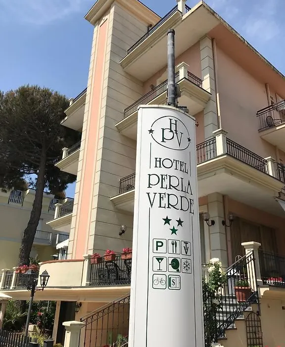 Şezlonglar, güneş şemsiyeleri ile plaj sadece 450 metre mesafededir. Bu konaklama yeri, Rimini şehrinin merkezine 5 km uzaklıktadır. Hotel Perla Verde, Roman Amphitheatre of Rimini'a kısa bir sürüş mesafesindedir. Otel Federico Fellini Uluslararasi havaalanına 15 km uzaklıkta, 24 A Serpieri Bartoli otobüs durağına ise 10 dakikalık yürüme mesafesindedir.